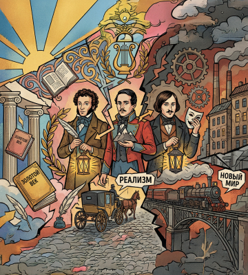 Пушкин, Лермонтов и Гоголь стоят у истоков национальной литературной традиции: с творчеством этих писателей связано рождение русского классического романа и формирование художественного языка новой эпохи.